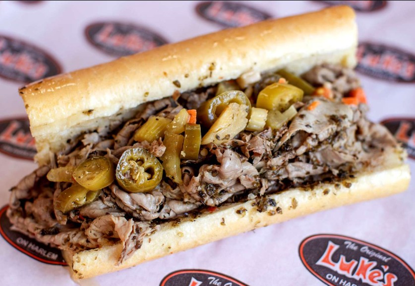 This Chicago classic features thin slices of roast beef simmered in seasoned au jus and loaded into an Italian roll. It’s usually topped with sweet peppers or spicy giardiniera, then dipped—sometimes fully submerged—into that flavorful jus. Messy? Yes. Worth it? Absolutely.