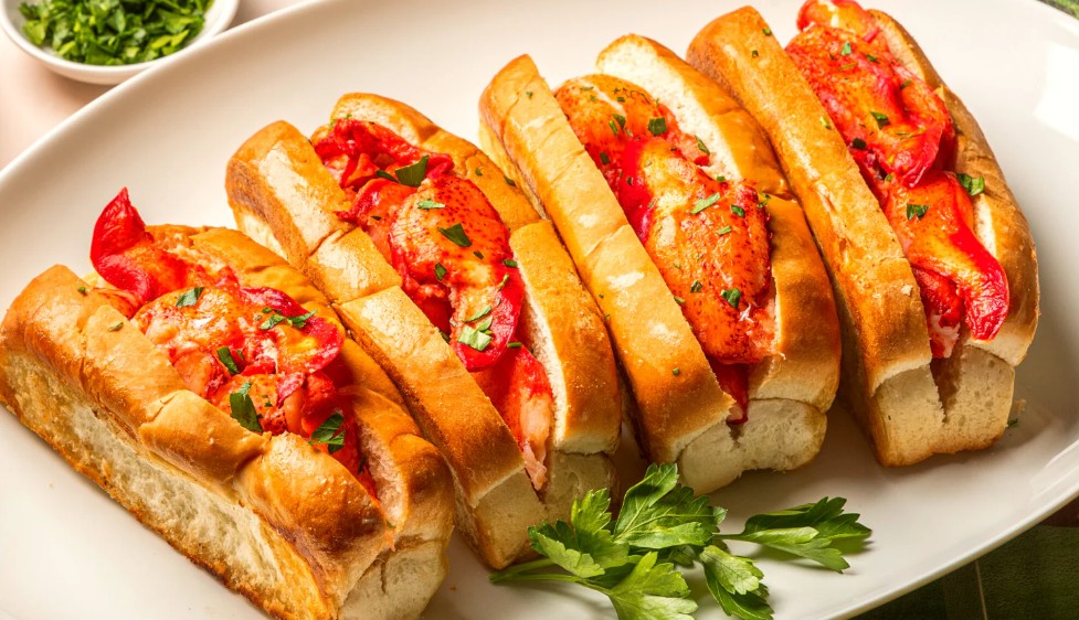 A taste of the Atlantic coast, the Lobster Roll is all about freshness. Chunks of tender lobster meat are lightly dressed in mayo or melted butter, then served in a toasted, buttery split-top roll. It’s simple, rich, and an essential summer bite for seafood lovers.